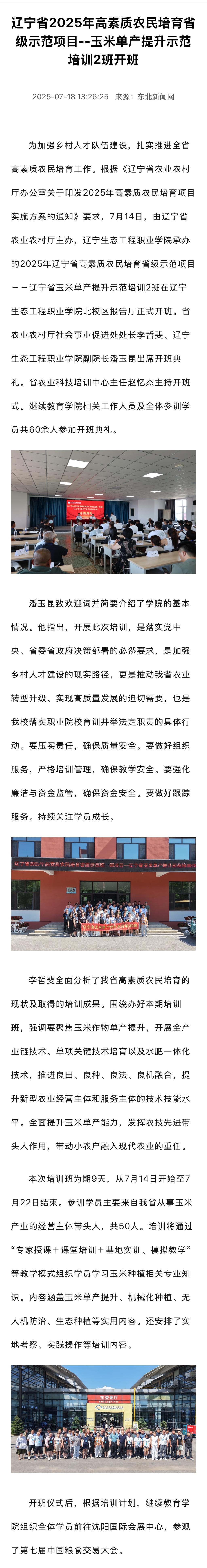 【东北新闻网】辽宁省2025年高素质农民培育省级示范项目--玉米单产提升示范培训2班开班